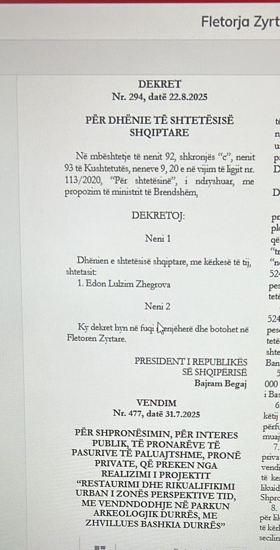 26/08/2025 15:29حصلت إيدون زيجروفا على “مكافأة” من رئيس جمهورية ألبانيا، بايرام بيجاي.